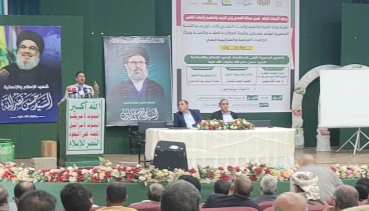 نظمّت وزارة التربية والتعليم والبحث العلمي بالتعاون مع اللجنة التحضيرية لمؤتمر فلسطين واللجنة المركزية للحشد والتعبئة ومركز الدراسات السياسية والإستراتيجية اليمني اليوم ندوة بالذكرى السنوية الأولى لاستشهاد شهيد الإسلام والإنسانية السيد حسن نصر الله.
