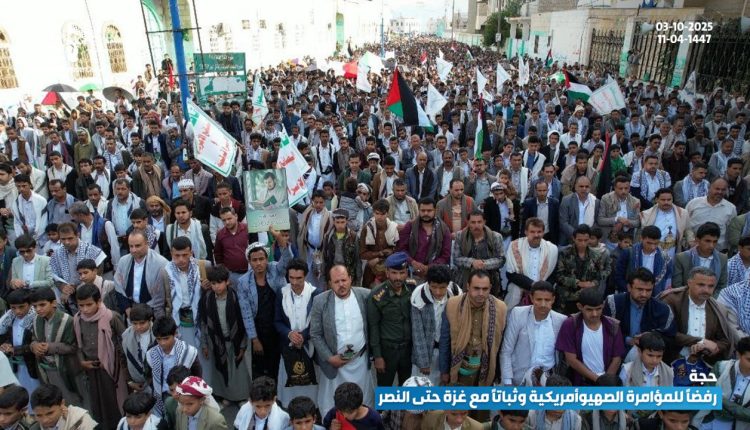 وعبر أبناء حجة في المسيرات التي تقدمها المحافظ هلال الصوفي وأمين عام محلي المحافظة إسماعيل المهيم ووكلاء المحافظة ومسؤول التعبئة عن رفضهم لخطة المجرم ترامب الهادفة دعم تنفيذ مخططات الكيان الصهيوني، وإنشاء ما يسمى بـ “إسرائيل الكبرى”.