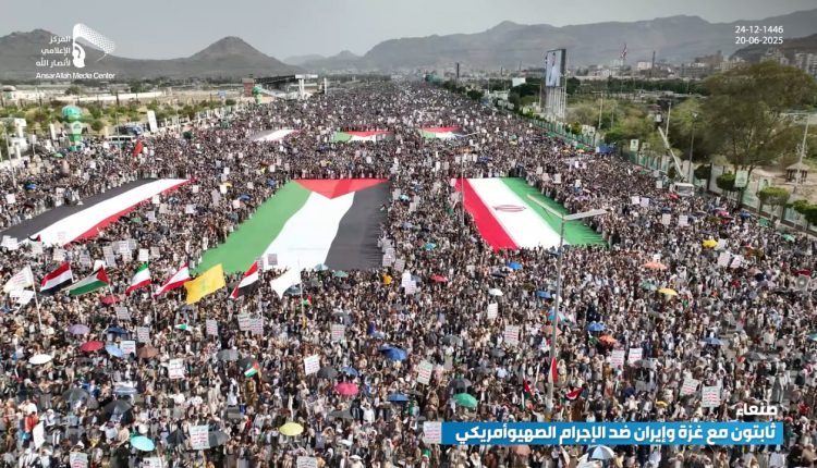 جددّت لجنة نصرة الأقصى الدعوة لأبناء الشعب اليمني للخروج المليوني يوم غدٍ الجمعة في ميدان السبعين وساحات المحافظات في مسيرات “طوفان الأقصى.. عامان من الجهاد والتضحية حتى النصر”.
