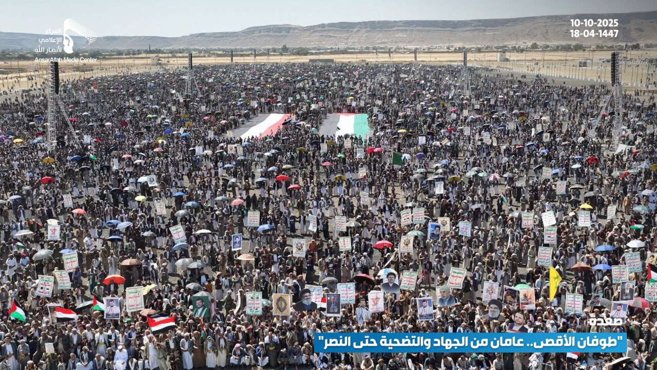 وأكد أن الخروج الاستثنائي لشعبنا العظيم اليوم جهاداً في سبيل الله وابتغاء لمرضاته ومباركة للشعب الفلسطيني ومجاهديه الأعزاء وتتويجاً لعامين من الاحتشاد الجهادي المشرف في مساندة الشعب الفلسطيني وتأكيداً على ثبات موقفنا حتى النصر.
