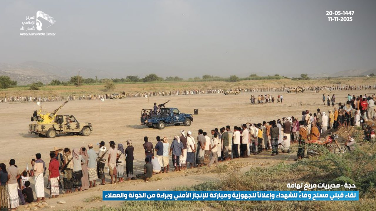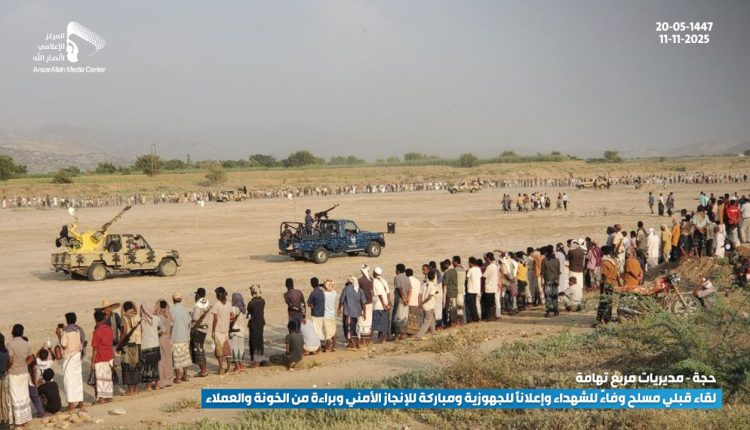 أكدت قبائل عبس وحرض وحيران وميدي ومستبأ في محافظة حجة، الجاهزية لمواجهة أي تصعيد للعدو ومرتزقته.