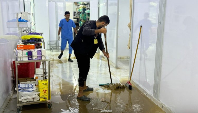 وأوضح المستشفى، في بيان نشره عبر صفحته على فيسبوك، أن طواقمه تباشر منذ ساعات الصباح عمليات سحب المياه وإصلاح الأضرار الكبيرة التي لحقت بالأقسام المتضررة، فيما تواصل الأقسام الأخرى تقديم خدماتها الطبية كالمعتاد رغم الظروف الصعبة.