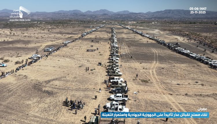 احتشدت قبائل قفلة عذر بمحافظة عمران اليوم الثلاثاء، في لقاء قبلي مسلح إعلانا للنفير العام والجهوزية لمواجهة العدو الصهيوني وأدواته في المنطقة تحت شعار” وفاء للشهداء.. والتعبئة المستمرة “.