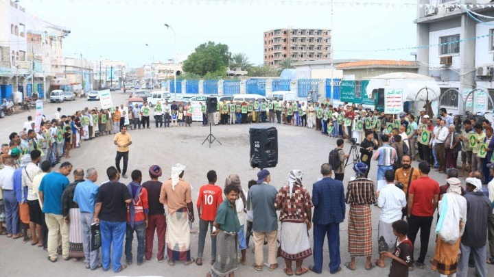 نظّم موظفو المؤسسة المحلية للمياه والصرف الصحي بمحافظة الحديدة، اليوم، وقفة احتجاجية تنديدًا بالإساءات الأمريكية، الصهيونية المتكررة التي تستهدف كتاب الله ومقدسات الأمة الإسلامية.
