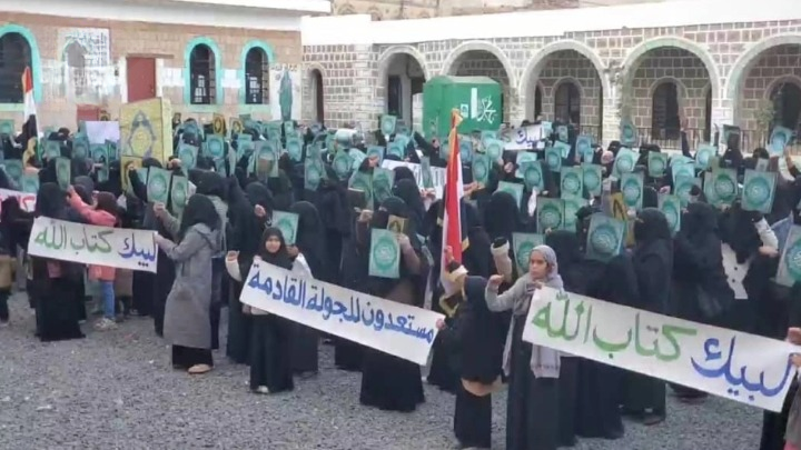 نظّمت الهيئة النسائية في مديرية شبام كوكبان بمحافظة المحويت، اليوم، وقفة احتجاجية تنديدًا بجريمة الإساءة للقرآن الكريم التي أقدم عليها أحد المرشحين الأمريكيين.