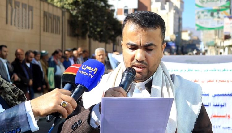واستنكر المشاركون في الوقفة، التي تقدّمها نائب مدير مكتب الرئاسة الدكتور يحيى المحاقري وأعضاء هيئة رفع المظالم ورؤساء الدوائر بالمكتب ونوابهم ومدراء العموم، بأشد العبارات جريمة الإساءة التي ارتكبها مرشح أمريكي مسخ بحق المصحف الشريف.