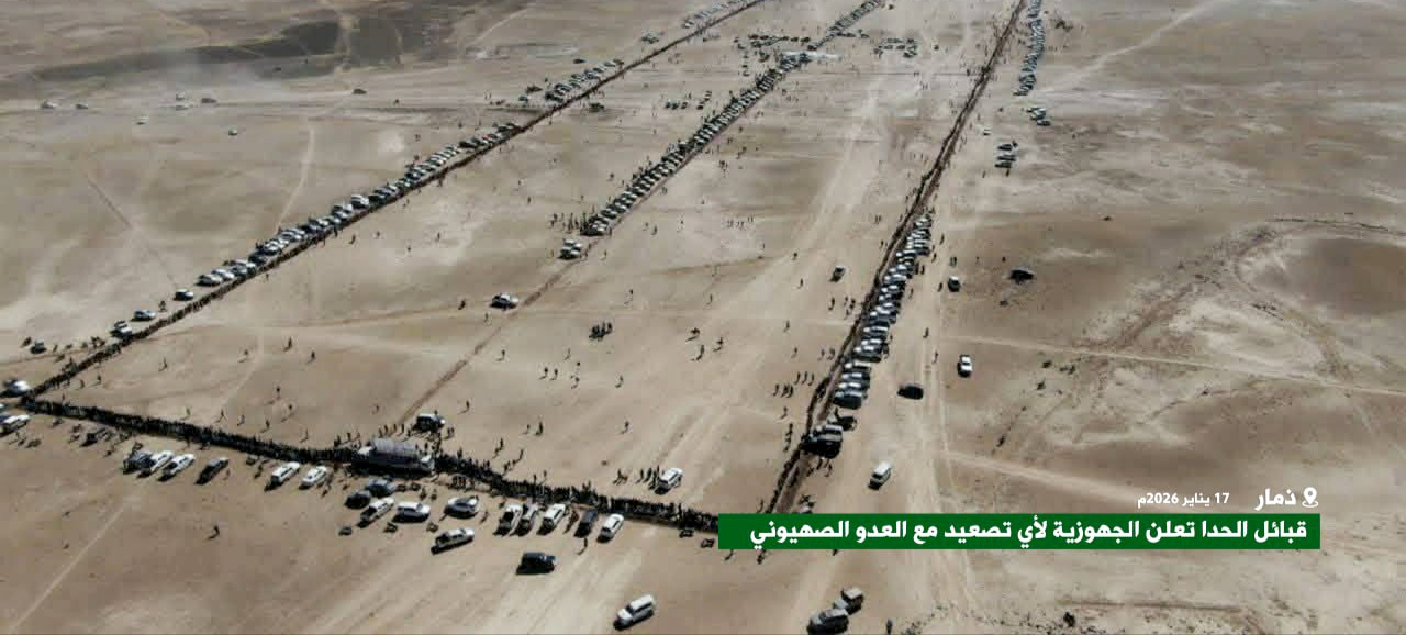 احتشدت قبائل الحداء بمحافظة ذمار، اليوم السبت، في لقاء مسلح، ترسيخا للهوية الإيمانية، وإعلانا للنفير العام والجهوزية للجولة القادمة من الصراع مع العدو الصهيوأمريكي وعملائه.