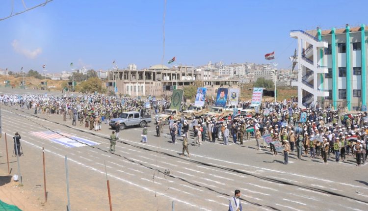 أقيم بساحة الرسول الأعظم بمدينة إب اليوم الأربعاء، عرض لخريجي دورات التعبئة العامة من طلاب الجامعات والكليات والمعاهد الحكومية والأهلية بالمحافظة تزامنا مع الذكرى السنوية لشهيد القرآن والشهيد الرئيس صالح الصماد تحت شعار” يد تبني ويدا تحمي”.
