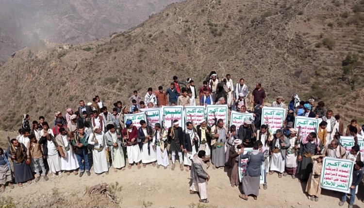 وردّد المشاركون في المسير، الذي تقدّمه مسؤول التعبئة بالمديرية إلى جانب المشايخ والوجهاء والأعيان، هتافات تؤكد الجهوزية العالية والاستنفار لخوض المواجهة المحتملة مع الأعداء ومرتزقتهم.