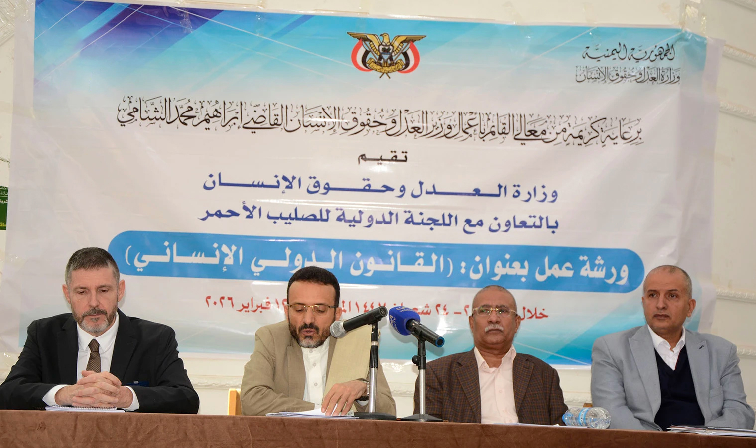 بدأت بصنعاء، اليوم الأحد، ورشة عمل حول القانون الدولي الإنساني تنظمها وزارة العدل وحقوق الإنسان، واللجنة الدولية للصليب الأحمر.