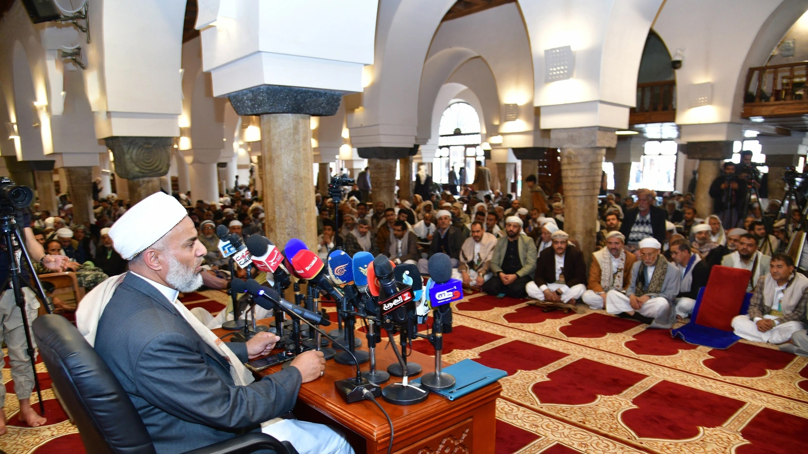 نظمّت رابطة علماء اليمن، والهيئة العامة للأوقاف والإرشاد، اليوم بالجامع الكبير بصنعاء، لقاءً تعبويًا بعنوان “وجوب مناصرة المسلمين في إيران ولبنان وفلسطين ضد أعداء الأمة المستكبرين أمريكا وإسرائيل”.