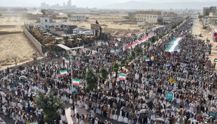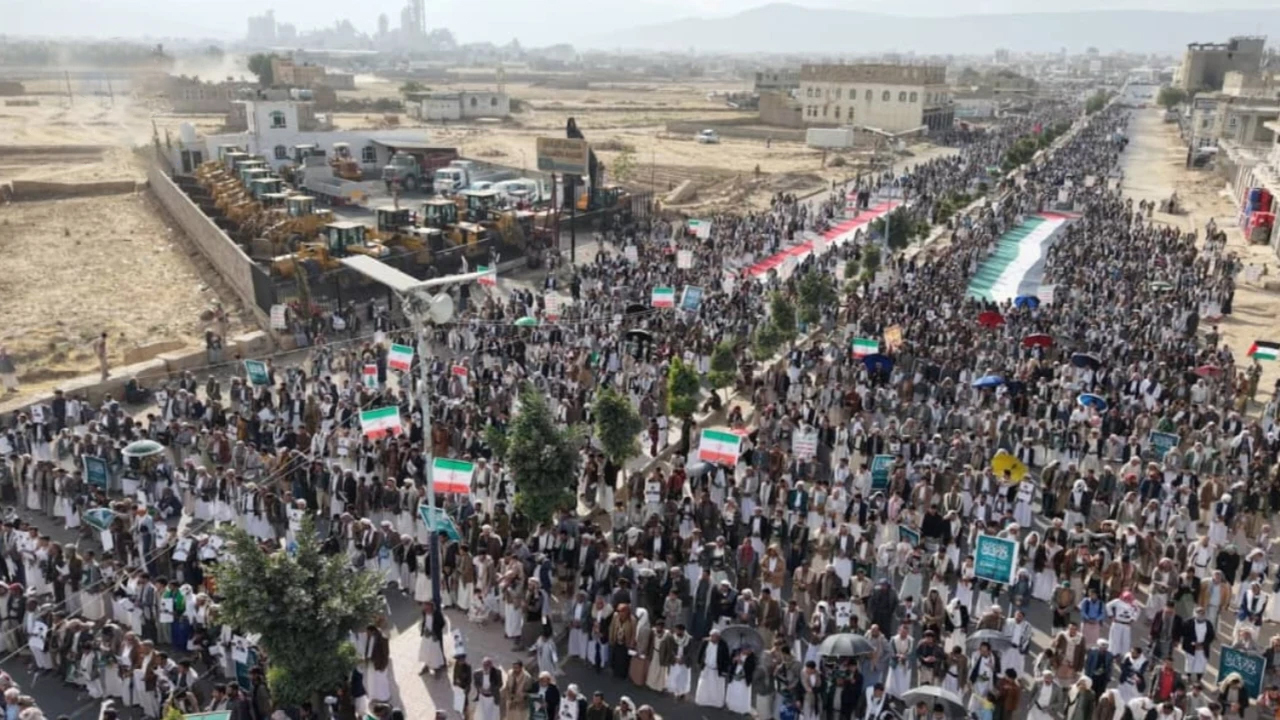 ورفعت الحشود صور الشهيد السيد علي خامنئي والأعلام اليمنية والإيرانية واللبنانية، ورددت هتافات أكدت على وحدة الموقف الإسلامي ورفض الهيمنة الأمريكية والصهيونية، والتضامن الكامل مع الشعبين الشقيقين إيران ولبنان في حقهما المشروع بالدفاع عن السيادة والاستقلال والكرامة.