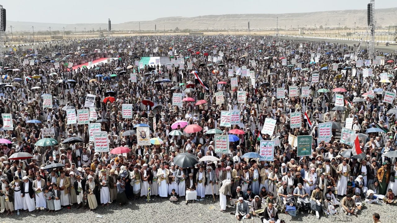 وأكد المشاركون في المسيرات الحاشدة بمركز المحافظة والمديريات، الجهوزية في مواجهة الطغيان الأمريكي، الإسرائيلي في إطار وحدة الساحات، والاستعداد للجهاد في سبيل الله مهما كانت التضحيات.