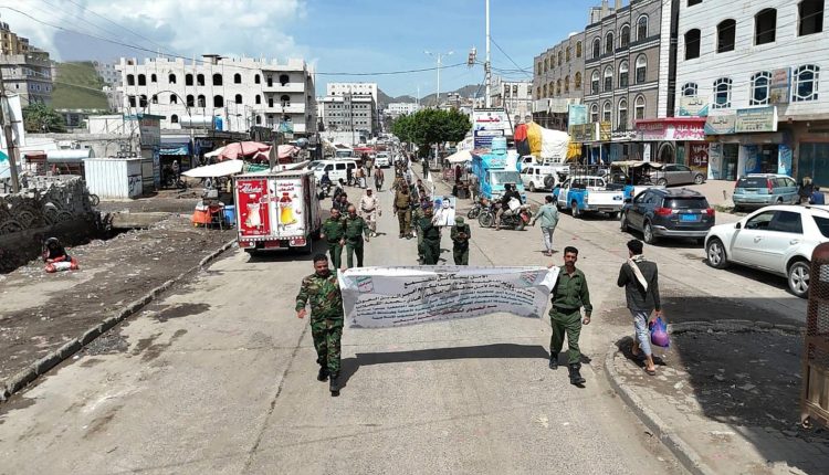نظمّت إدارة أمن مديرية المشنة بمحافظة إب، والشرطة المجتمعية بالمديرية، اليوم الثلاثاء ، مسيرًا راجلًا، ووقفة تأييدًا للإنجازات الأمنية، التي كان آخرها القبض على عناصر مرتبطة بمخابرات العدو الإسرائيلي.