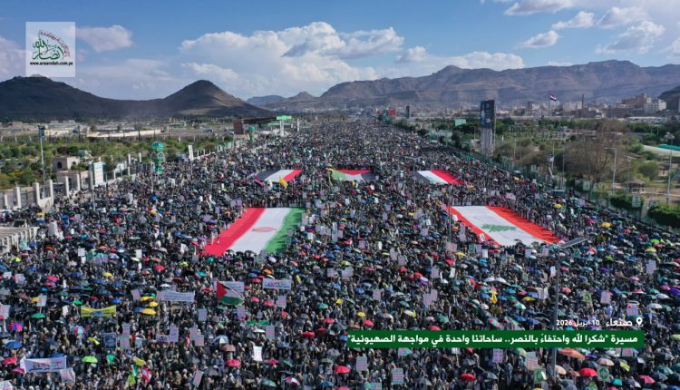 شهدت العاصمة صنعاء اليوم الجمعة، طوفانا بشريا في مليونية “شكرا لله واحتفاءً بالنصر.. ساحاتنا واحدة في مواجهة الصهيونية” مباركة للشعب الإيراني وقيادته ومجاهدي المحور والأمة الإسلامية بالانتصار العظيم، وتأكيدا على ثبات الموقف في نصرة المقاومة في لبنان وفلسطين.