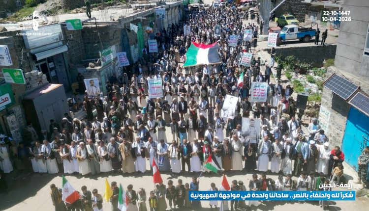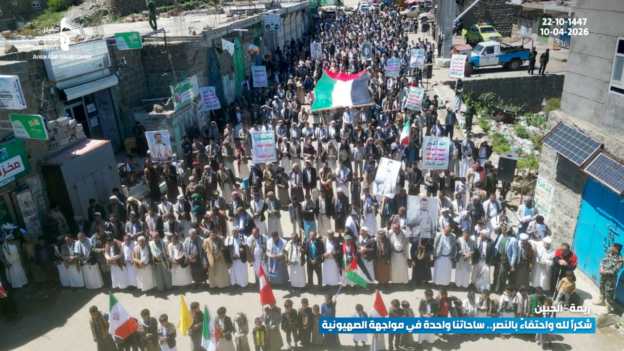 شهدت محافظة ريمة اليوم الجمعة، أكثر من 100 مسيرة جماهيرية مباركة بالانتصار التاريخي لمحور المقاومة، وتأكيدا على الثبات مع غزة ولبنان تحت شعار “شكراً لله واحتفاءً بالنصر .. ساحاتنا واحدة في مواجهة الصهيونية”.