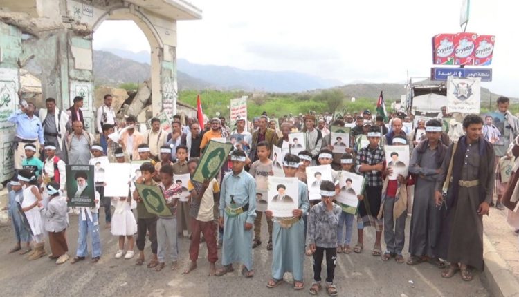 وبارك المحتشدون في المسيرات التي أقيمت بساحة الشهيد الصماد بالهجر، والنصر بالكعبين، والأقصى بضمران، النصر المؤزر الذي حققته إيران ومحور المقاومة، والصمود في وجه العدوان وإفشال مخططات المشروع الصهيوأمريكي في الهيمنة على الأمة وثرواتها.