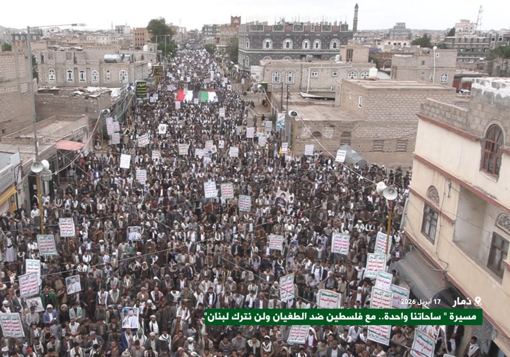 وأوضح بيان صادر عن المسيرات، أن خروج الشعب اليمني اليوم يأتي تأكيدًا على مواقفه الثابتة في مواجهة مخطط العدو الصهيوني المسمى بـ”إسرائيل الكبرى”، ومناصرةً لقضايا الأمة ومقدساتها وفي مقدمتها القضية الفلسطينية والمسجد الأقصى المبارك، ونصرة للأشقاء في لبنان وأبطال حزب الله المجاهدين، واستعداداً لكل التطورات المحتملة في مواجهة الأعداء.