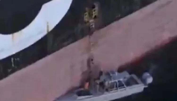 نشرت بحرية حرس الثورة في إيران لقطات تُظهر السيطرة على سفينتي حاويات في مضيق هرمز أمس.