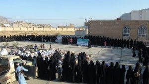 نظمت نساء محافظة إب وقفة احتجاجية وقافلة غذائية دعما للجيش واللجان الشعبية .