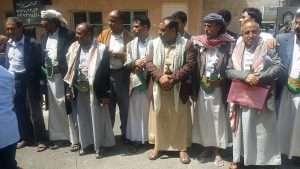 الى ذلك نظم العشرات من الإعلاميين والثقافيين والناشطين والحقوقيين وقفة احتجاجية ضد العدوان السعودي الامريكي الغاشم على اليمن، واستنكر المحتجون في بيان اصدروه استمرار العدوان السعودي الصهيوامريكي على اليمن