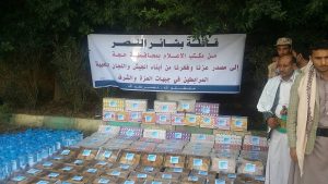 قافلة غذائية دعما واسنادا للمجاهدين مقدمة من مكتب الاعلام بحجه رافقها وقفه احتجاجيه للعشرات من الإعلاميين والناشطين والحقوقيين .