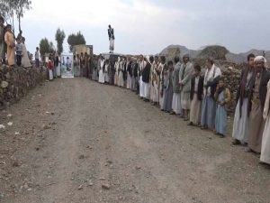 كما ثمن الزائرون لأسرة الشهيد موقف ولدها البطل وقدموا لها وسام الثبات والبطولة المقدم من كل مقاتل يمني ثابت وصامد في خندقه ومترسه في مختلف الجبهات لمواجهة قوى الطغيان والإجرام.