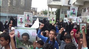 وحيت المحتجات ابطال الجيش واللجان الشعبية والقوة الصاروخية والقوة البحرية مثمنات جهودهم وتضحياتهم العظيمة وثمودهم الاسطوري وهم يرفعون هامة الوطن عاليا بما يسطرون من ملاحم الدفاع المقدس عن الكرامة والعرض والارض ..