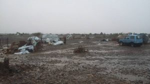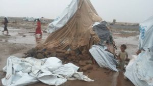 وطبقا لمصادر محلية متعددة تتواجد بالقرب من مخيمات النازحين بتلك القرى قالت ل”حجةنيوز” إن اوضاعا مأساوية خلفتها العواصف ومياة سيول الأمطار بحق سكان مخيمات النازحين في مديريتي عبس وحيران والحقت بهم أضرارا مختلفة تتمثل في هدم وتمزيق مخيماتهم وإتلافاحتياجاتهم وممتلكاتهم من مواد غذائية وملابس وفرش وغيرها من مستلزمات سكنهم