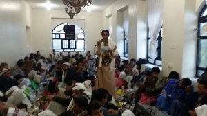 كما قرأ المجتمعون الفاتحه لارواح الشهداء وشفاء للجرحي وأشاد المجتمعون بالإتفاقات والتفاهمات الأخيرة بين قيادتي أنصار الله والمؤتمر الشعبي العام لتوحيد الصف وتعزيز الوحدة الوطنية وإنهاء المهاترات الإعلامية التي مثلت صفعة في وجه العدو الذي راهن على شق الصف الوطني بين المكونين لخلخلة الجبهة الداخلية , ودعا المجتمعون إلى مواجهة التصعيد بالتصعيد ورفد الجبهات بالمال والرجال , وأن يتضمن إحتفالنا بثورتي سبتمبر تقديم القوافل للجبهات