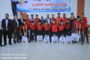 #صنعاء : صور من تكريم الدائرة التربوية لأنصار الله للمنتخب الوطني للناشئين ومباركته لهم بمناسبة تأهلهم الى نهائيات كأس آسيا للناشئين . Image On سبتمبر 30, 2017 Share Share FacebookTwitterGoogle+ReddItWhatsAppPinterestالبريد الإلكتروني