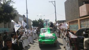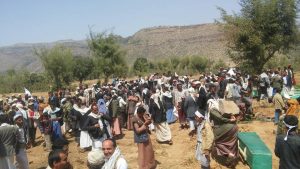 زف المشيعون الجثامين الطاهره في موكب عظيم إلى روضة الشهداء بمنطقة الصيح بمدينه حجة